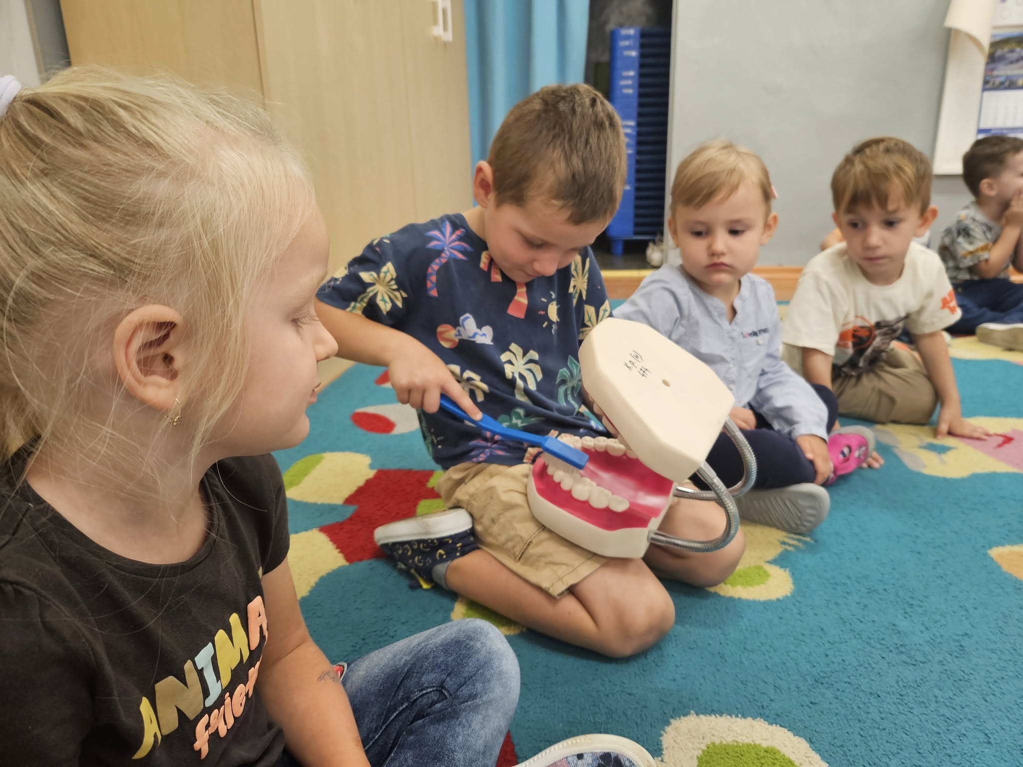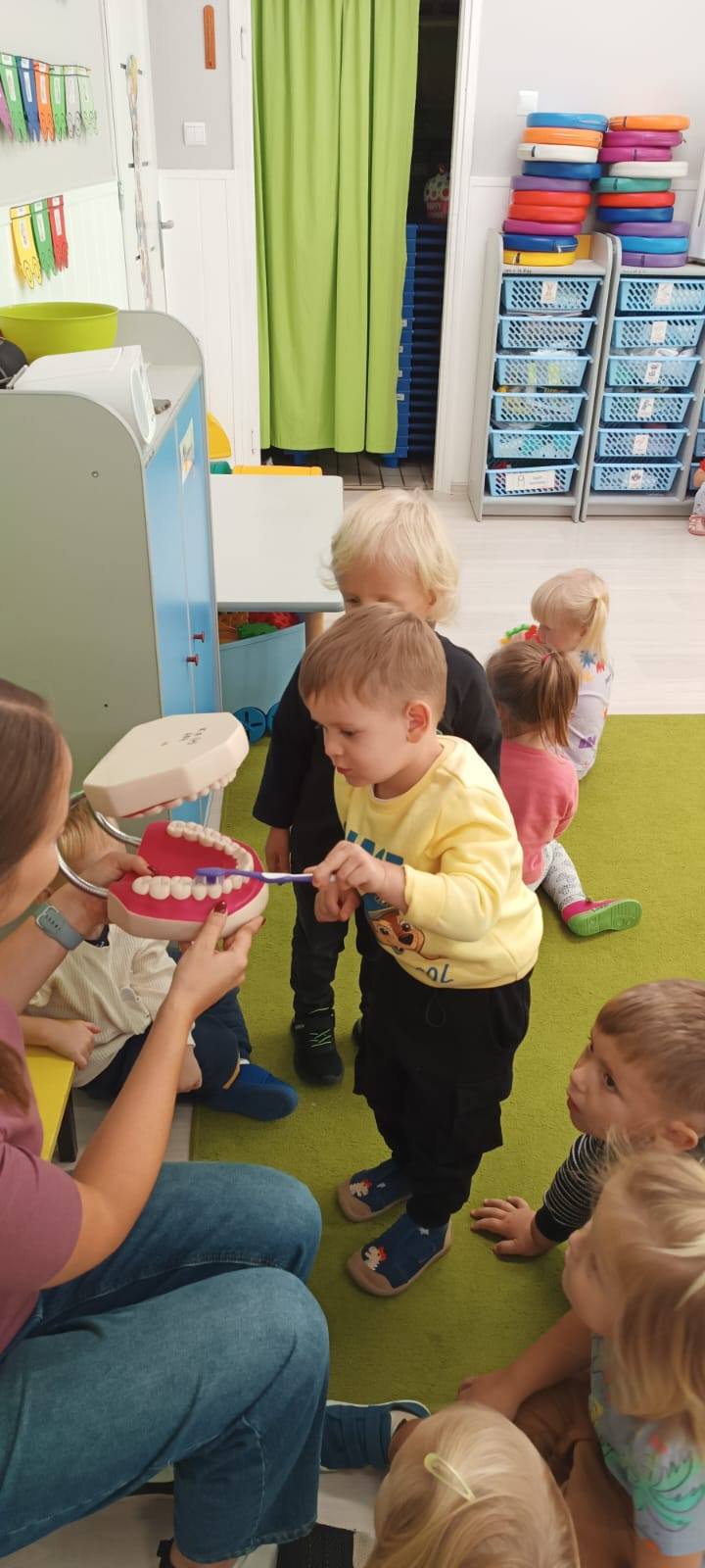 Krasnalki, Misie i Żabki  uczestniczą w programie edukacyjnym Czyściochowa Akademia i poznają zasady dbania o ząbki.