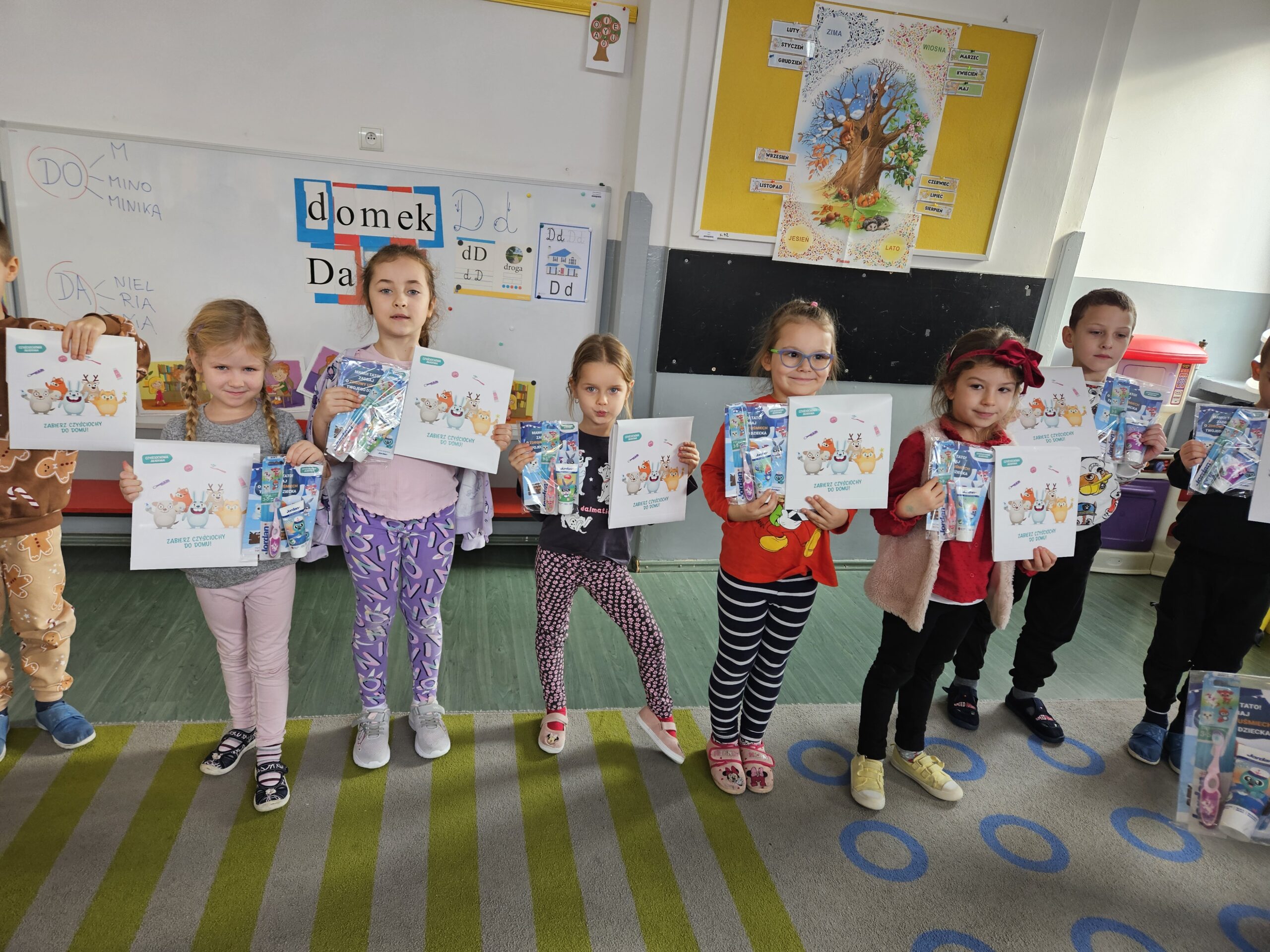 Dzieci z grupy Zajączki przystąpiły do ogólnopolskiego projektu Akademii Czyściochowo. W ramach programu kształtowane są dobre nawyki higieniczne poprzez różnorodne materiały i formy aktywności. Przedszkolaki poznawały ciekawostki na temat swojego ciała, dowiedziały się czym jest zdrowie oraz jak o nie dbać oraz z zainteresowaniem słuchały również „Czyściochowych przygód”. Razem z Psem Łapsonem dowiedziały się, jak odpowiednio myć ręce, z Jelonekiem Gładziem odkrywały, w jaki sposób pielęgnować skórę. Dzięki perypetiom Świnki Zakatarzynki obserwowały, jak dbać o higienę nosa. Podpatrując Królika Higienka, uczyły się samodzielnie myć zęby. Razem z Lisicą Rudką przekonały się, że kąpiel to nie tylko zabawa. Obserwując Kota Pupika i jego siostrę, Kotkę Pupilkę, odkryły, że samodzielne korzystanie z toalety to prosta sprawa. Dzieci otrzymały wspaniałe pakiety edukacyjne zawierające artykuły higieniczne, książeczki z zdaniami a także teatrzyk z bohaterami Czyściochowych przygód. Dziękujemy organizatorom za przesłane materiały!