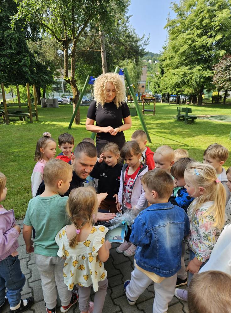 Nie zabrakło także ważnych wskazówek na wypadek, gdyby ktoś się zgubił. Policjanci uczyli dzieci, jak się zachować w takiej sytuacji – do kogo zwrócić się o pomoc, jak podać swoje imię i nazwisko oraz numer telefonu do rodzica.