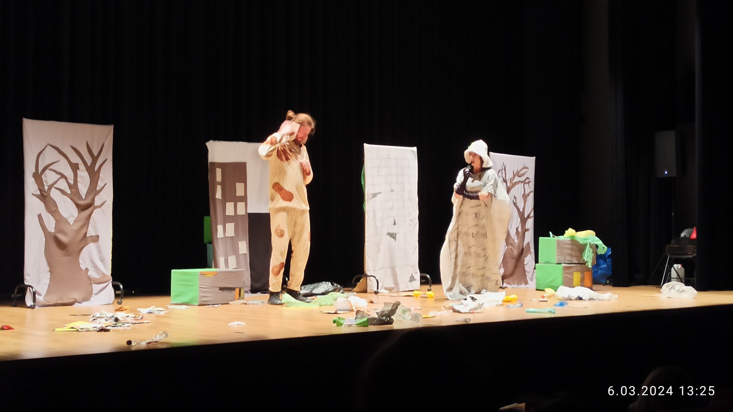 Spektakl w idealny sposób przekazywał dzieciom zagadnienia na temat dbania o planetę, segregacje śmieci oraz recykling. Przedstawione zostały konsekwencje zanieczyszczeń wody i powietrza oraz ich wpływu na ludzi, zwierzęta i rośliny. Spektakl opowiadał o losach starej Gazety Emilii, pieska Rysia, potworze Gałganie oraz mądrym Drzewie Życia. Rysiek razem z Emilią podjęli próbę ratowania świata, a ich najlepszymi pomocnikami okazały się nasze dzieciaki z przedszkola. Dzieci wykazały się ogromna wiedzą nt. segregacji śmieci oraz wiedziały jak zmniejszyć zanieczyszczenia w powietrzu.