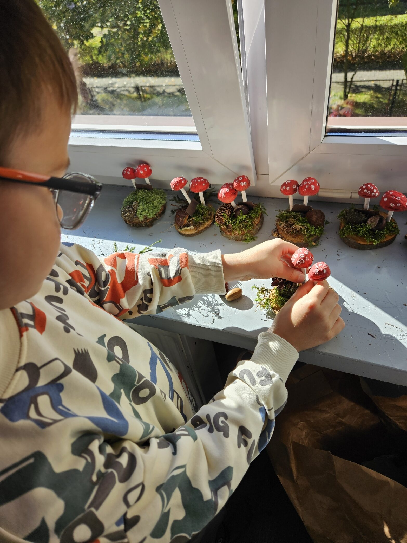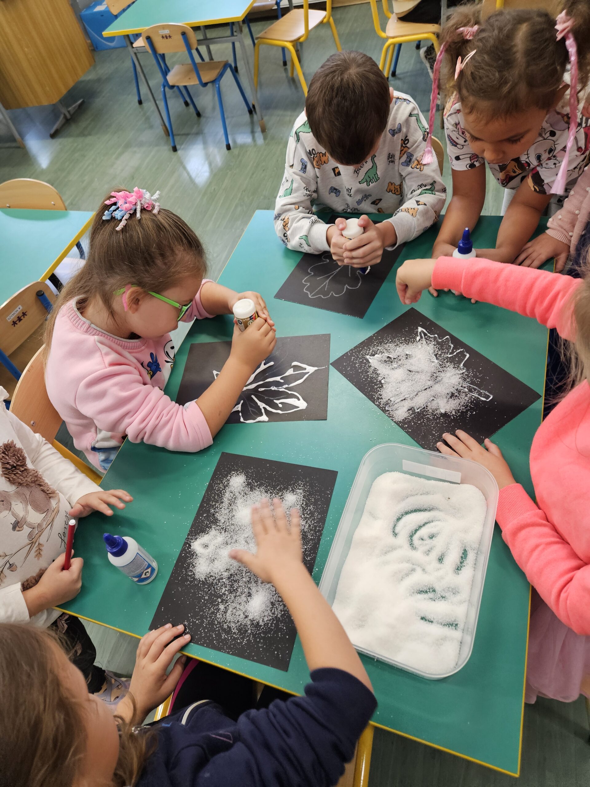 Kolorowa pora roku zawitała na dobre w grupie Zajączki. To okazja do licznych zabaw z wykorzystaniem skarbów natury. Dzieci poznawały rodzaje drzew, oraz ich owoce, przeliczały i porównywały liczebność zbiorów, obserwowały z wykorzystaniem lup mech, grzyby, szyszki i porosty, poznawały ciekawostki dotyczące życia zwierząt rozwijając tym samym zainteresowanie światem przyrody. Przedszkolaki wykonały pracę plastyczną „Cukrowe listki” „Jesienny sad” „Jeżyk” różnymi technikami rozwijając umiejętności manualne. Zajączki wybrały się także do suskiego parku gdzie mogły poczuć różnymi zmysłami wspaniałą porę roku jaką jest jesień. Część jej udało się stworzyć w pięknym kąciku przyrody.