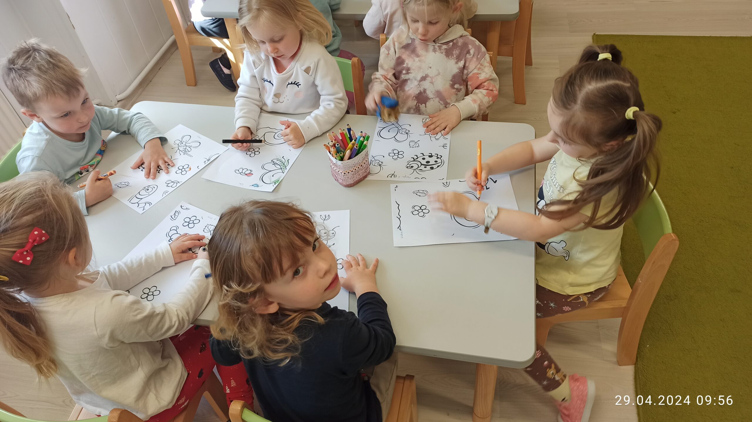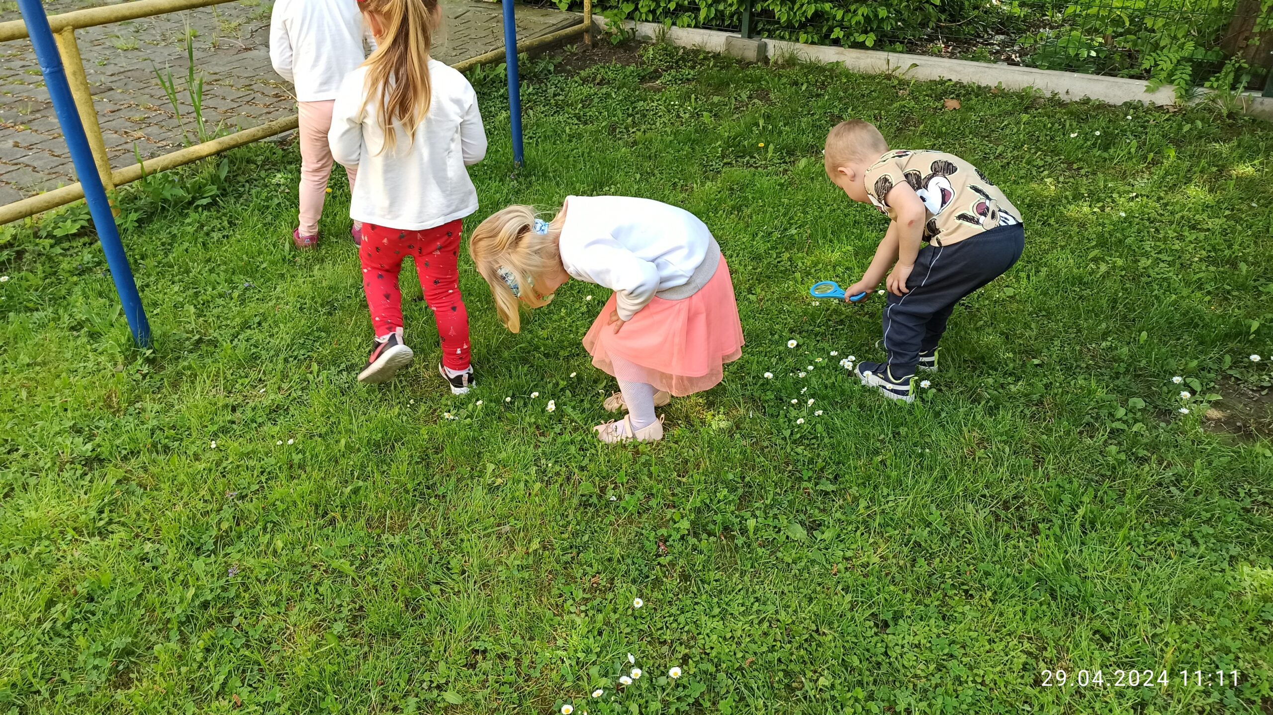 W ostatnich dniach najmłodsza grupa przedszkolna poznawała jak piękna może być łąka. Sprawdzali jakie rośliny na niej rosną. Wspólnie przeliczali kwiaty oraz tworzyli rytmy z nich, układając je na swoim zielonym dywanie.