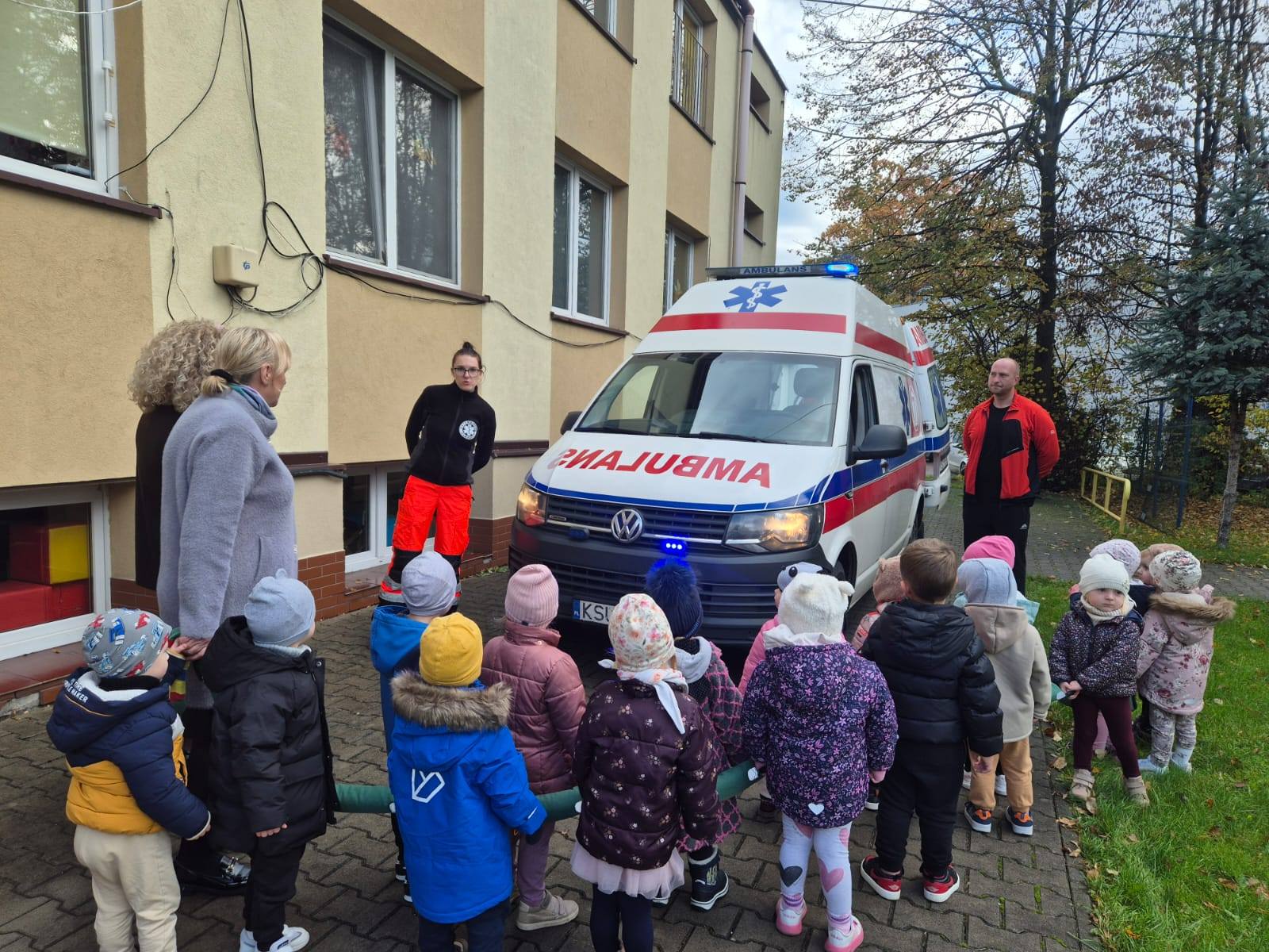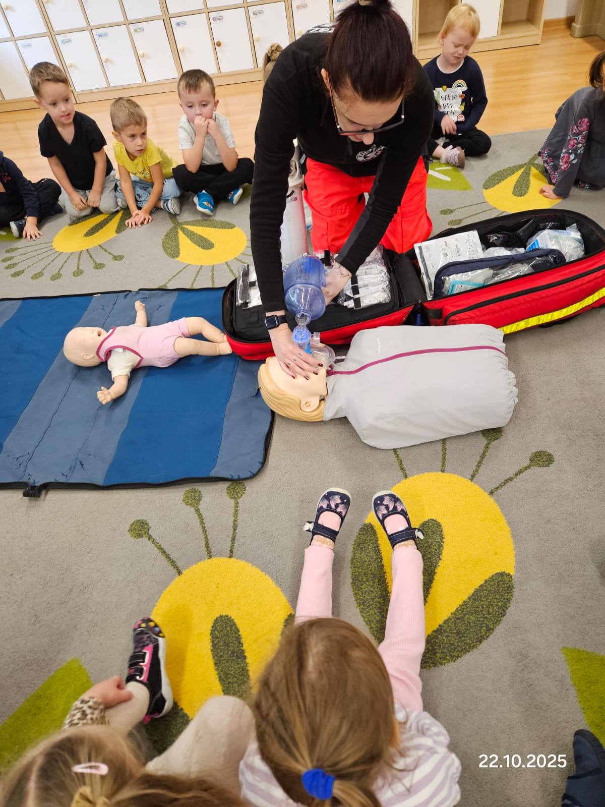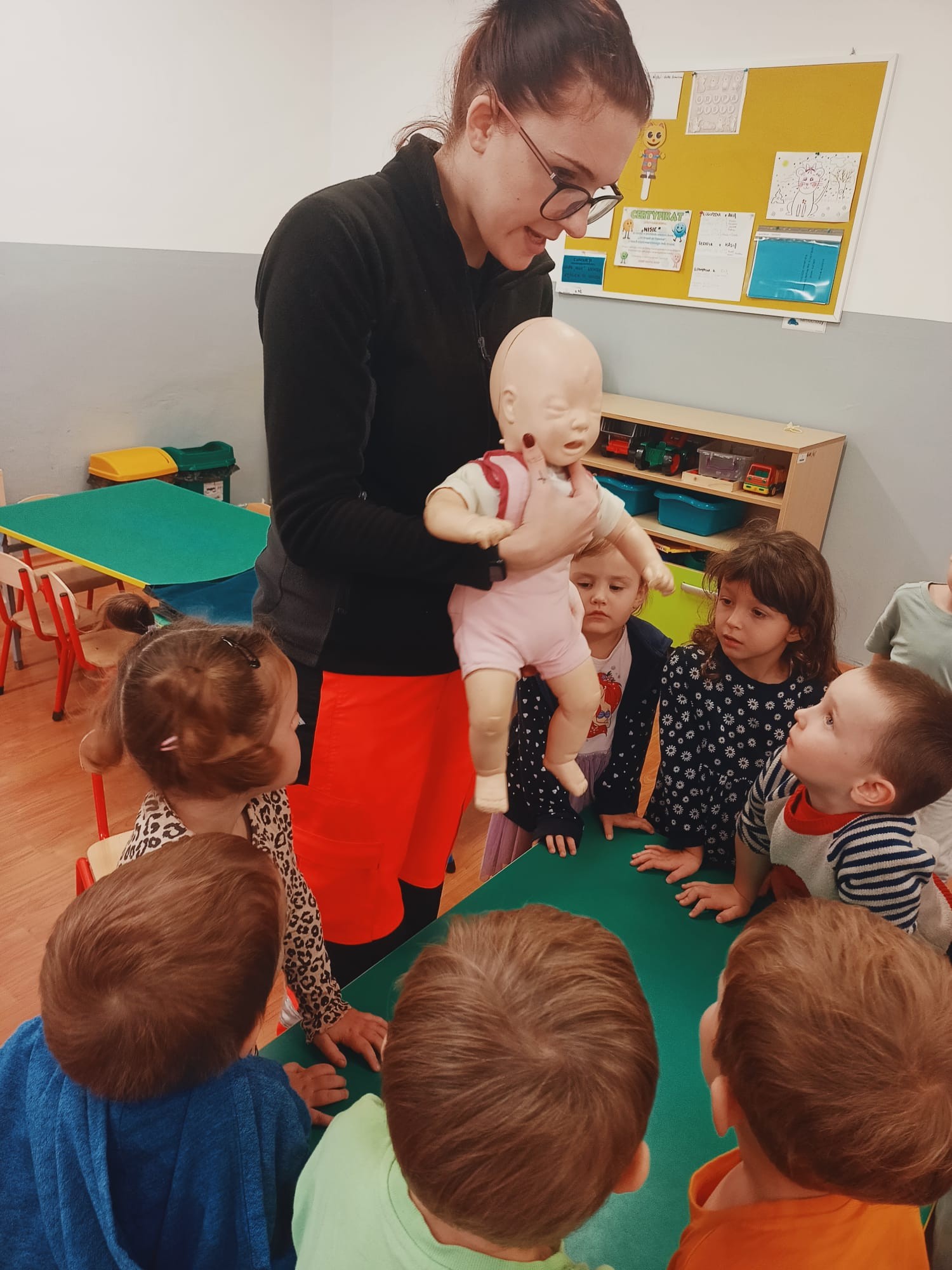 Bardzo dziękujemy za wizytę Panu Tomkowi oraz Pani Ani- mamie Tymka i Frania za przybliżenie dzieciom zawodu ratownika medycznego, kształtowanie postawy odpowiedzialności za siebie i innych oraz pokaz pierwszej pomocy.