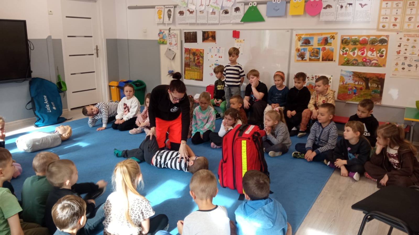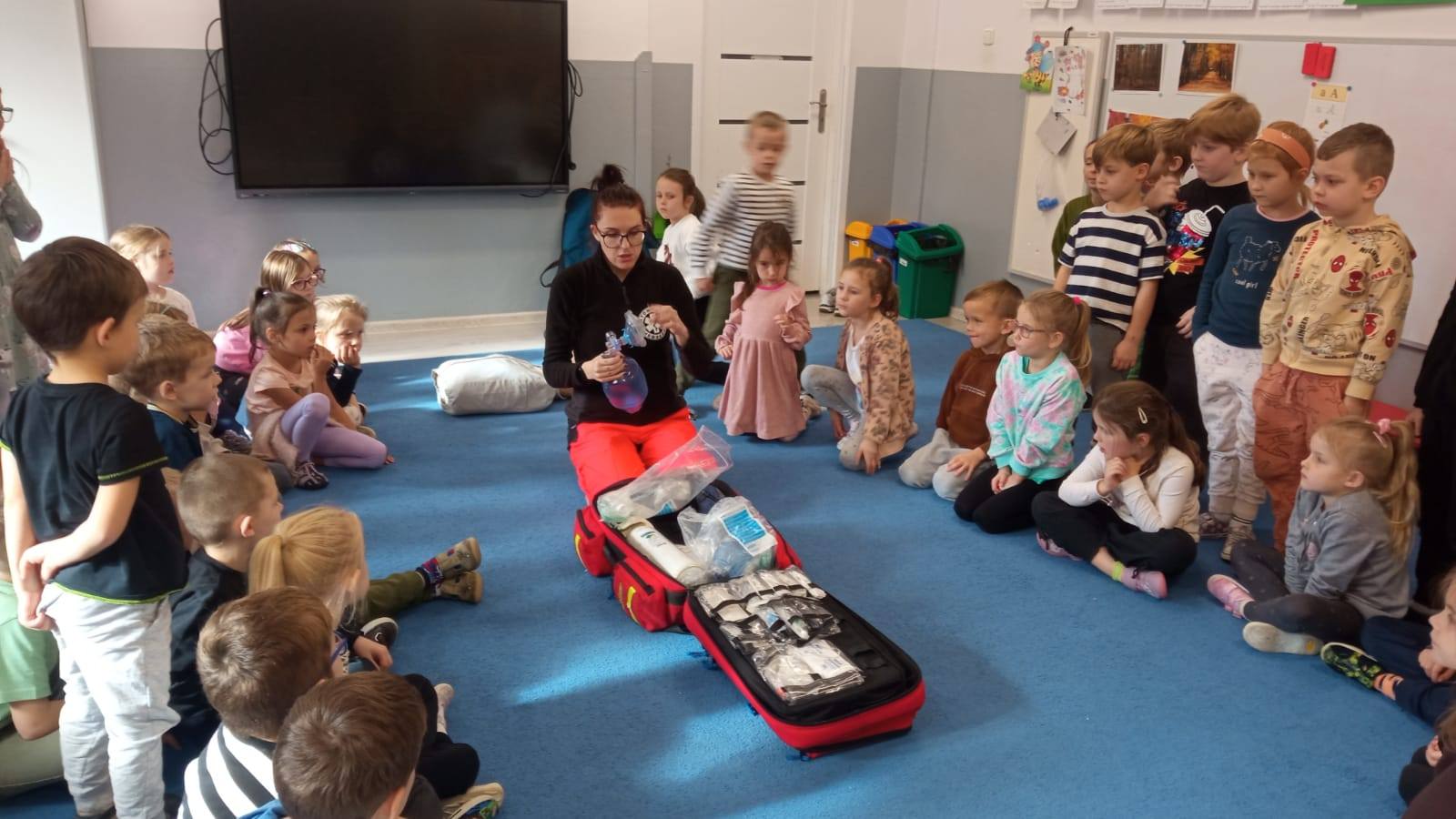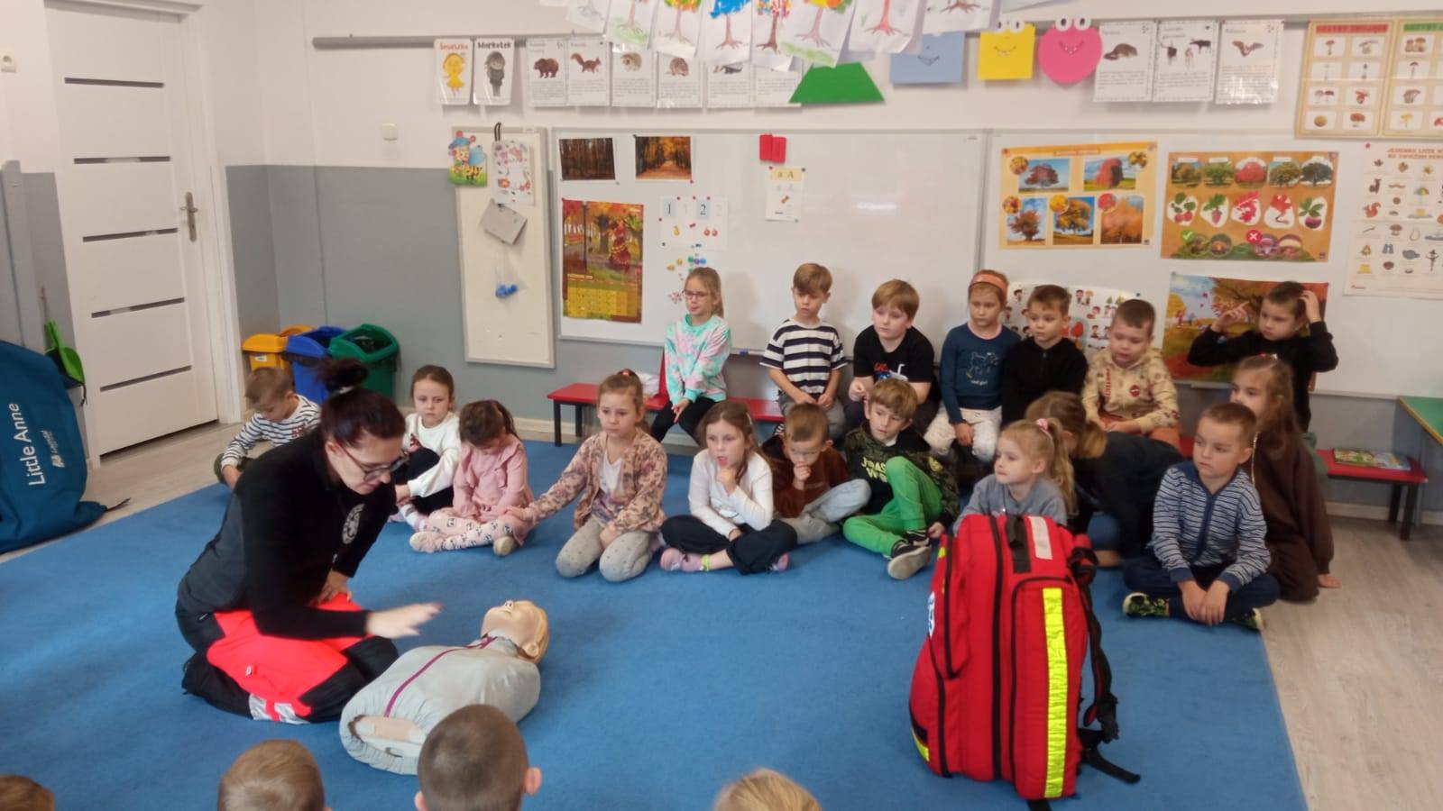 Bardzo dziękujemy za wizytę Panu Tomkowi oraz Pani Ani- mamie Tymka i Frania za przybliżenie dzieciom zawodu ratownika medycznego, kształtowanie postawy odpowiedzialności za siebie i innych oraz pokaz pierwszej pomocy.