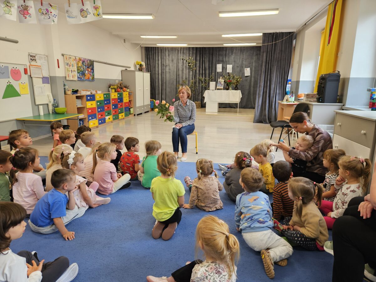 Nasze przedszkole również włączyło się do tej akcji. Ogromną radość sprawiła nam wizyta pani Barbary Pająk, która przyjęła nasze zaproszenie. Emerytowana nauczycielka naszego przedszkola, przygotowała dla przedszkolaków fraszki Jana Kochanowskiego.