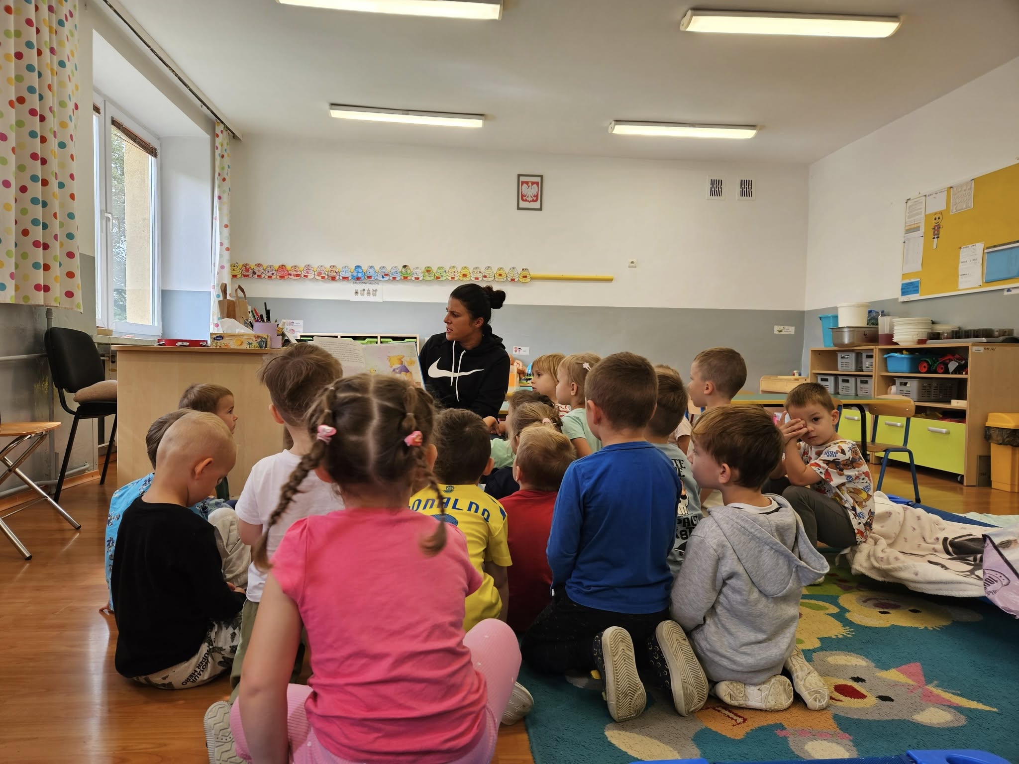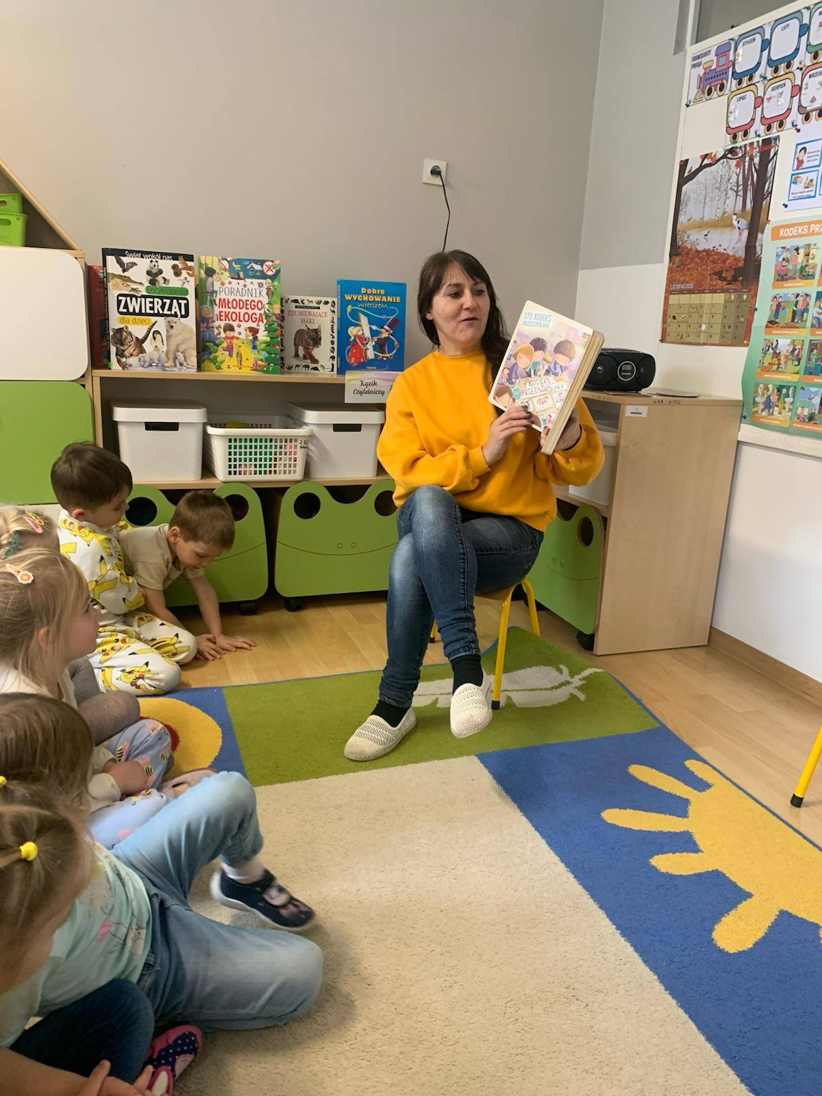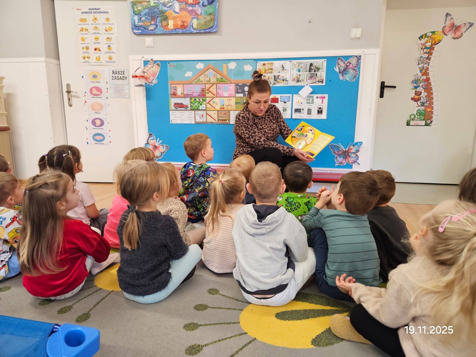 • 14 października – grupę Misie odwiedziła mama Leonarda. Pani Natalia przeczytała ulubioną książkę swojego syna „A królik słuchał” Corri Doerffeld. Niezwykle wartościowa historia o empatii, zrozumieniu, wspierająca rozwój emocjonalny dzieci.