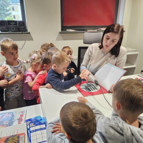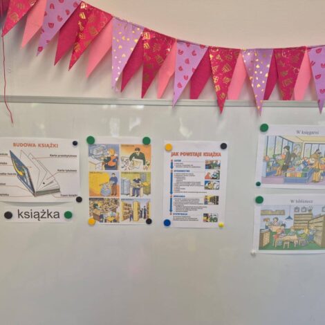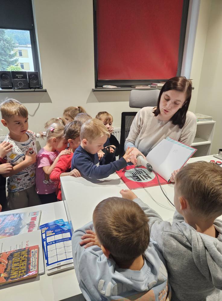 Dzieci z grupy „Biedronki” podczas zajęć w dniu 13 października poznały etapy powstawania książki – od pomysłu autora, poprzez pracę ilustratora i drukarza, aż po trafienie książki do biblioteki i rąk czytelnika. Przedszkolaki obejrzały różne rodzaje książek, rozmawiały o ich przeznaczeniu oraz samodzielnie wykonały własną mini-książeczkę. Zajęcia rozwijały zainteresowanie literaturą, wyobraźnię oraz umiejętność wypowiadania się na temat przeczytanych tekstów. Na koniec dzieci obejrzały film edukacyjny „Jak powstaje książka” utrwalając tym samym zdobytą wiedzę.