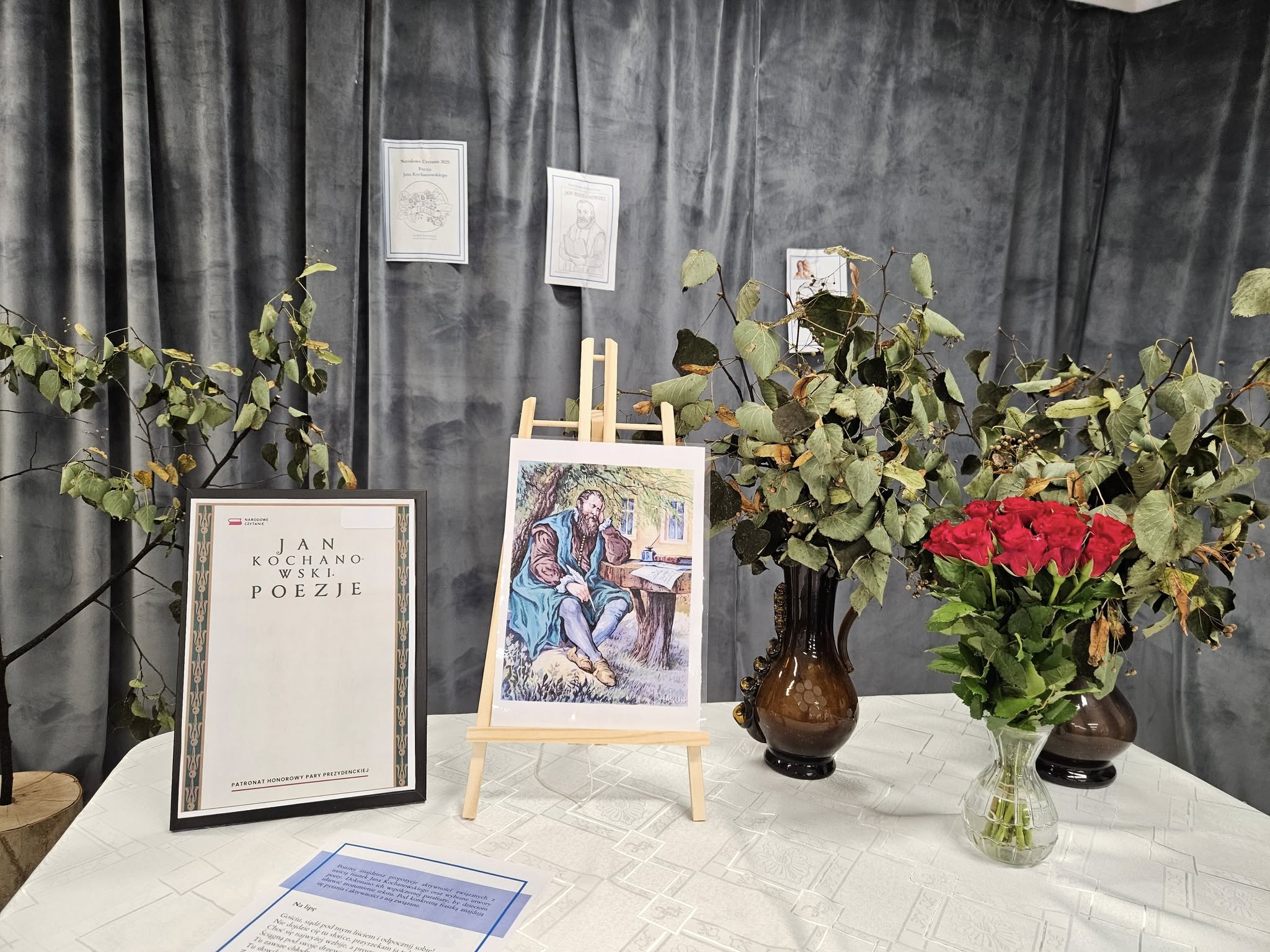 do której przyłączyć się mogą wszystkie chętne osoby, placówki edukacyjne i kulturalne oraz instytucje publiczne i społeczne w kraju i za granicą. Przez ostatnie lata czytano utwory najwybitniejszych polskich pisarzy i poetów, m.in. Adama  Mickiewicza, Juliusza Słowackiego, Stanisława Wyspiańskiego, Aleksandra Fredry. Głównym celem Narodowego Czytania jest promocja czytelnictwa, jako podstawowej formy kontaktu z kulturą, propagowanie dzieł polskiej literatury oraz wzmacnianie kulturowej i narodowej wspólnoty Polaków poprzez dobór kanonicznych utworów oraz ich prezentację w atrakcyjnej oprawie artystycznej. W tym roku wybrano „Poezje” Jana Kochanowskiego, wielkiego twórcę epoki renesansu. Znany jest Polakom przede wszystkim ze swych humorystycznych fraszek a także wzruszających trenów. Ogromną radość sprawiła nam wizyta pani Barbary Pająk, która 26 września  przyjęła nasze zaproszenie. Nauczycielka naszego przedszkola, która odpoczywa na emeryturze, przygotowała dla przedszkolaków fraszki Jana Kochanowskiego.  Starszaki wysłuchały fraszki „Na lipę” ,a młodsze grupy „Na różę”. Pani Basia przyniosła ze sobą