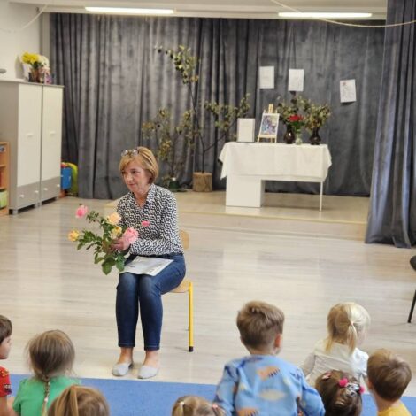 i zaprezentowała dzieciom gałązki lipy oraz kwiaty róży oraz zorganizowała zabawy ruchowe.