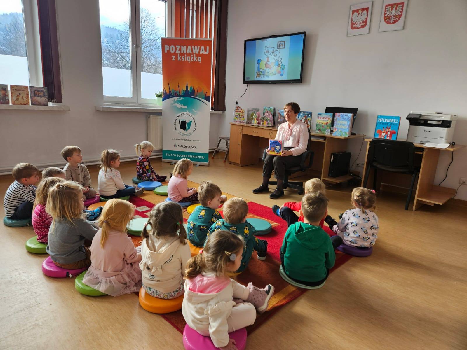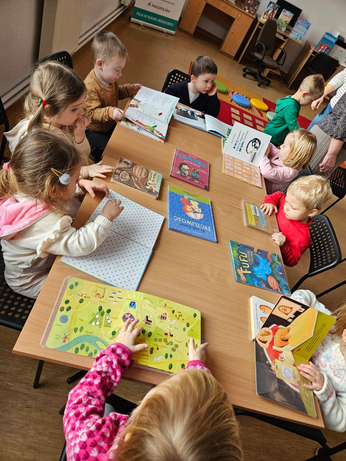 im. Dr M. Żmigrodzkiego.  W zajęciach bibliotecznych do tej pory wzięły udział grupy  Misie, Krasnale, Biedronki  i Zajączki. Przedszkolaki miały okazję zobaczyć, jak wyglądają księgozbiory, na czym polega praca bibliotekarki i w jaki sposób można wypożyczyć książkę, a także jak należy się zachowywać w bibliotece.