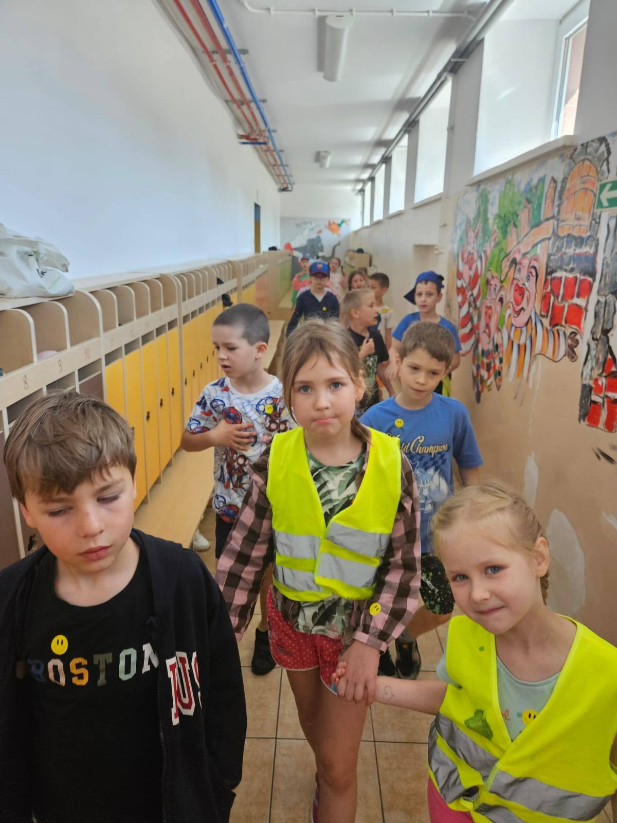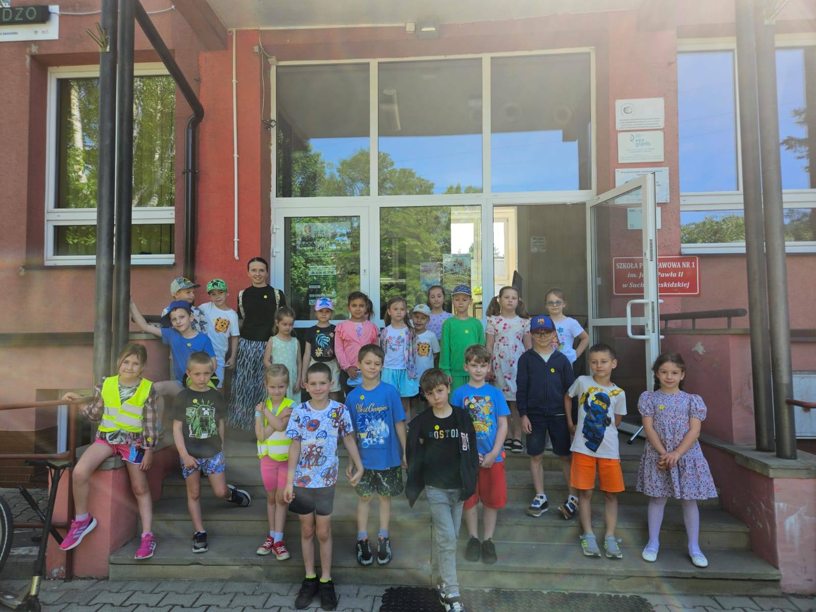 Ukończenie zerówki to pierwszy etap edukacji jaki przedszkolaki z grupy „Zajączki” i „Pszczółki” mają za sobą. Już za kilka tygodni rozpoczną przygodę w szkole. Aby oswoić się nieco ze środowiskiem szkolnym starszaki wybrały się na wycieczkę do Szkoły Podstawowej nr 1. Dzieci zwiedziły budynek, odwiedziły szatnię, stołówkę, salę gimnastyczną, bibliotekę, salę informatyczną oraz szkolne korytarze a także uczestniczyły w lekcji siedząc w ławkach. Wszyscy zgodnie uznali, że w szkole jest bardzo fajnie.