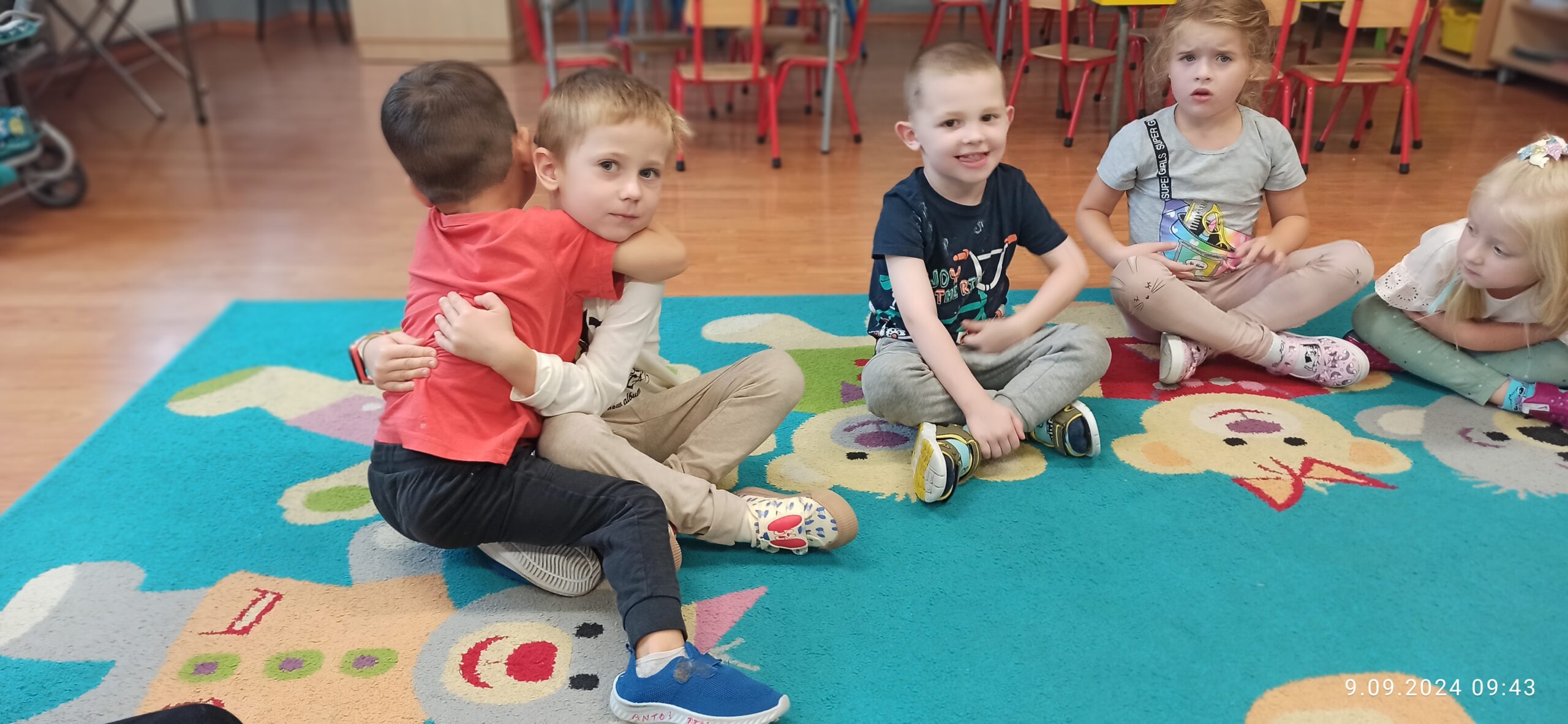 Misiom bardzo szybko minął pierwszy miesiąc nowego roku  przedszkolnego. Był to bardzo ważny miesiąc w szczególności dla trójki dzieciaków, które dołączyły do grupy. Cała grupa przyjęła ich bardzo serdecznie i każdy potrafi wspólnie się bawić bez barier komunikacyjnych.
