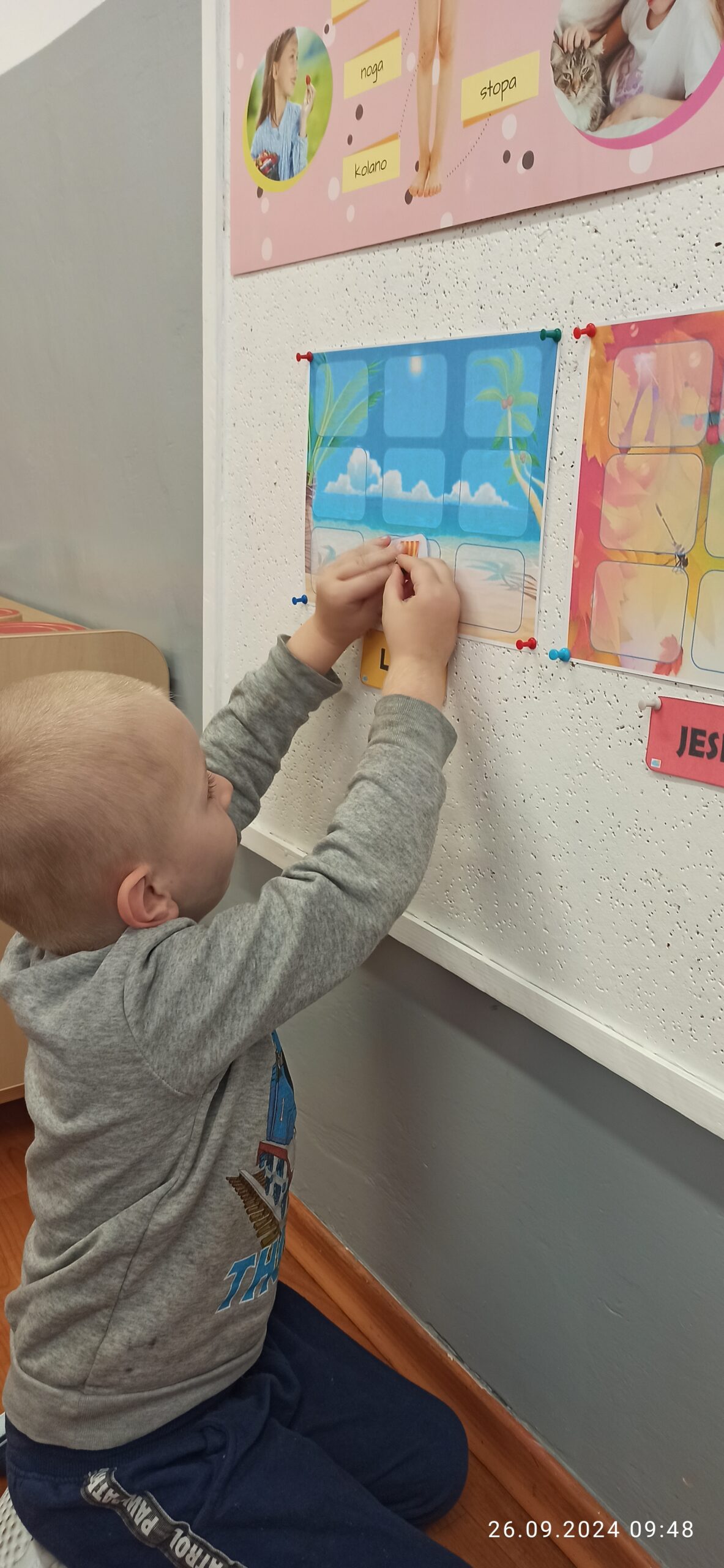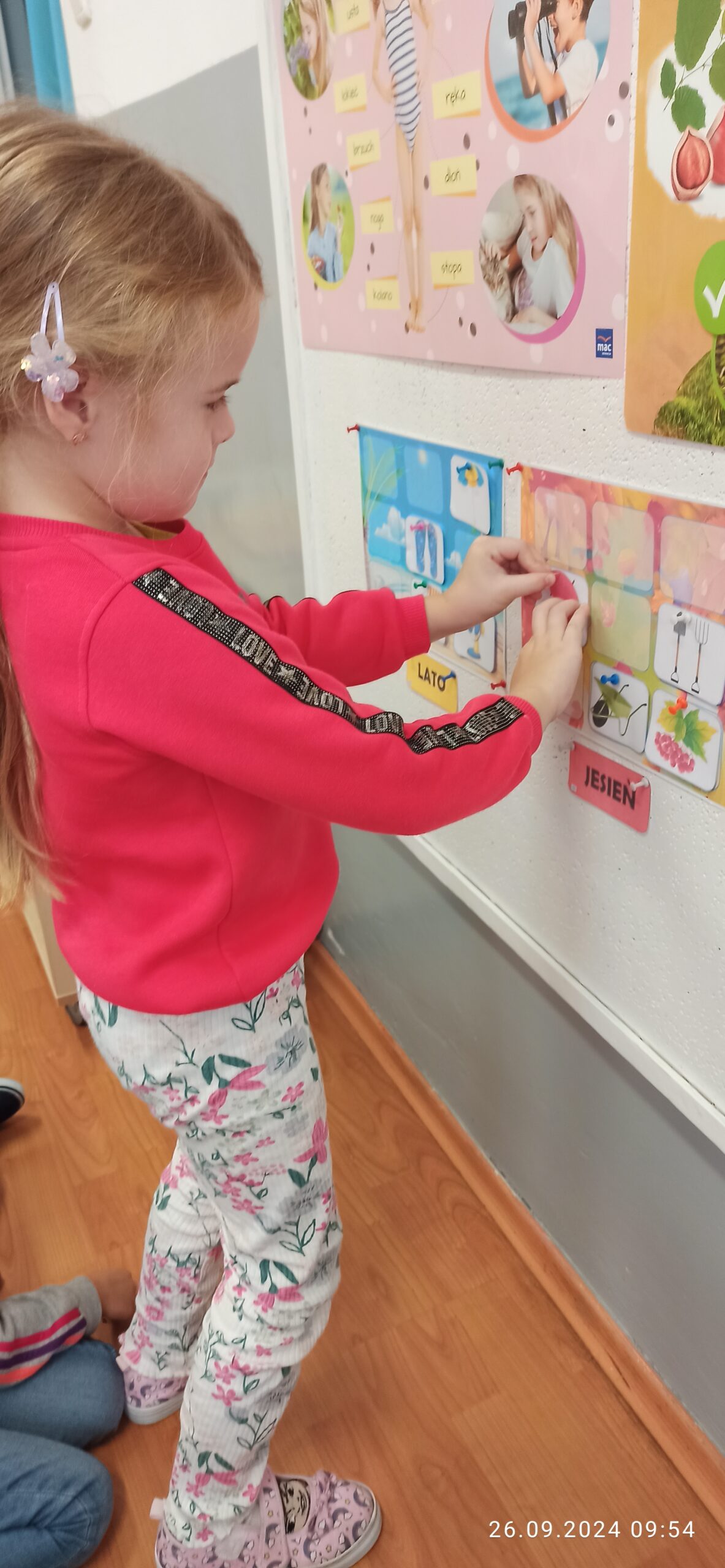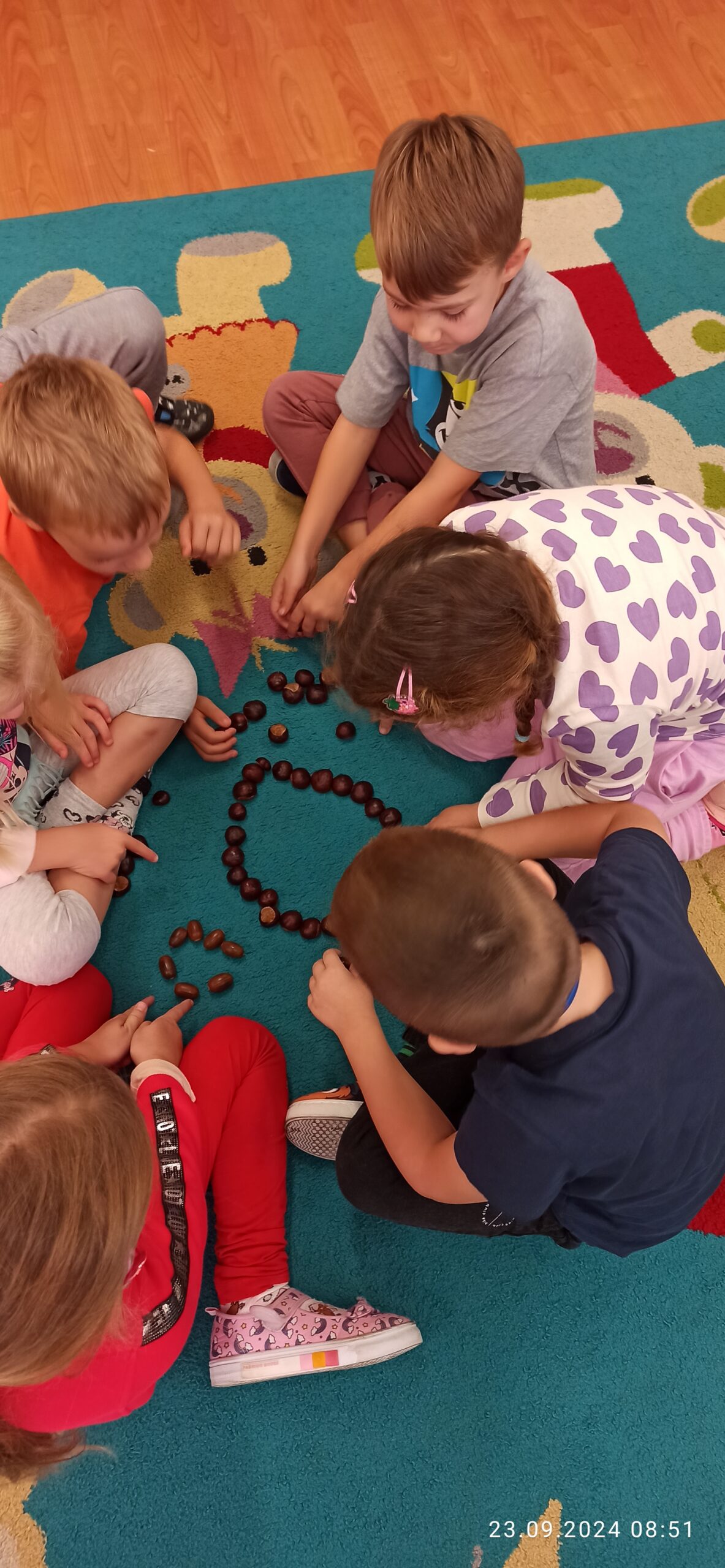 We wrześniu misie pracowały nad muzyczną powitanką oraz uczyły się nowej piosenki „Niezwykły miś”. Utrwalały literę „O”  oraz liczbę „1” i „2” wykorzystując m.in. dary jesieni czy zabawy ruchowe i słuchowe. Dzieci podzieliły się wspomnieniami z wakacji nawiązują do mijającej pory roku. Wspólnie dopasowały symbole pór roku: lata i jesieni. W zespołowej zabawie przypomniały sobie nazwy części ciała, kształtowały orientację w schemacie własnego ciała i przestrzeni oraz wiedzą jak prawidłowo zadbać o higienę.