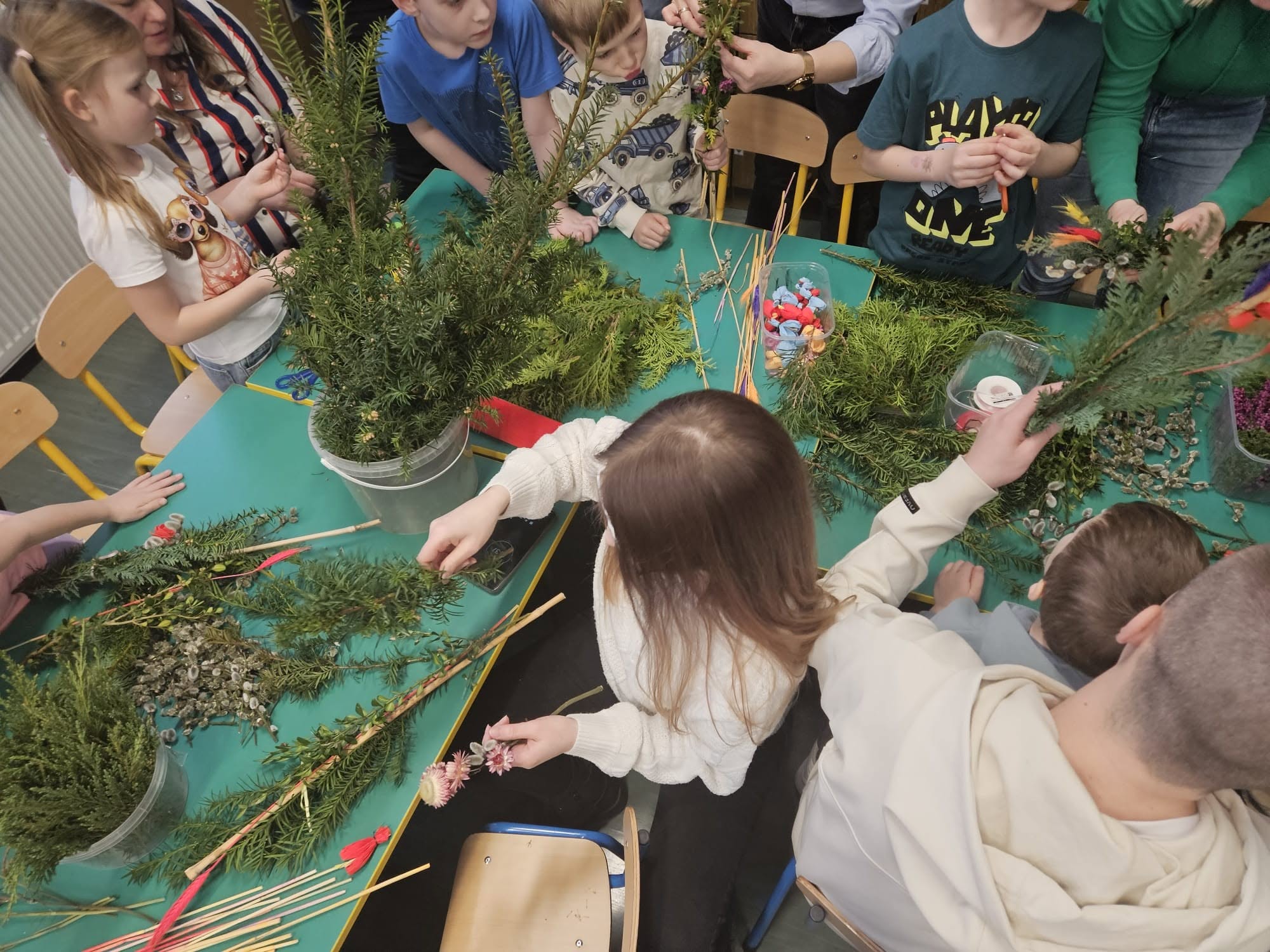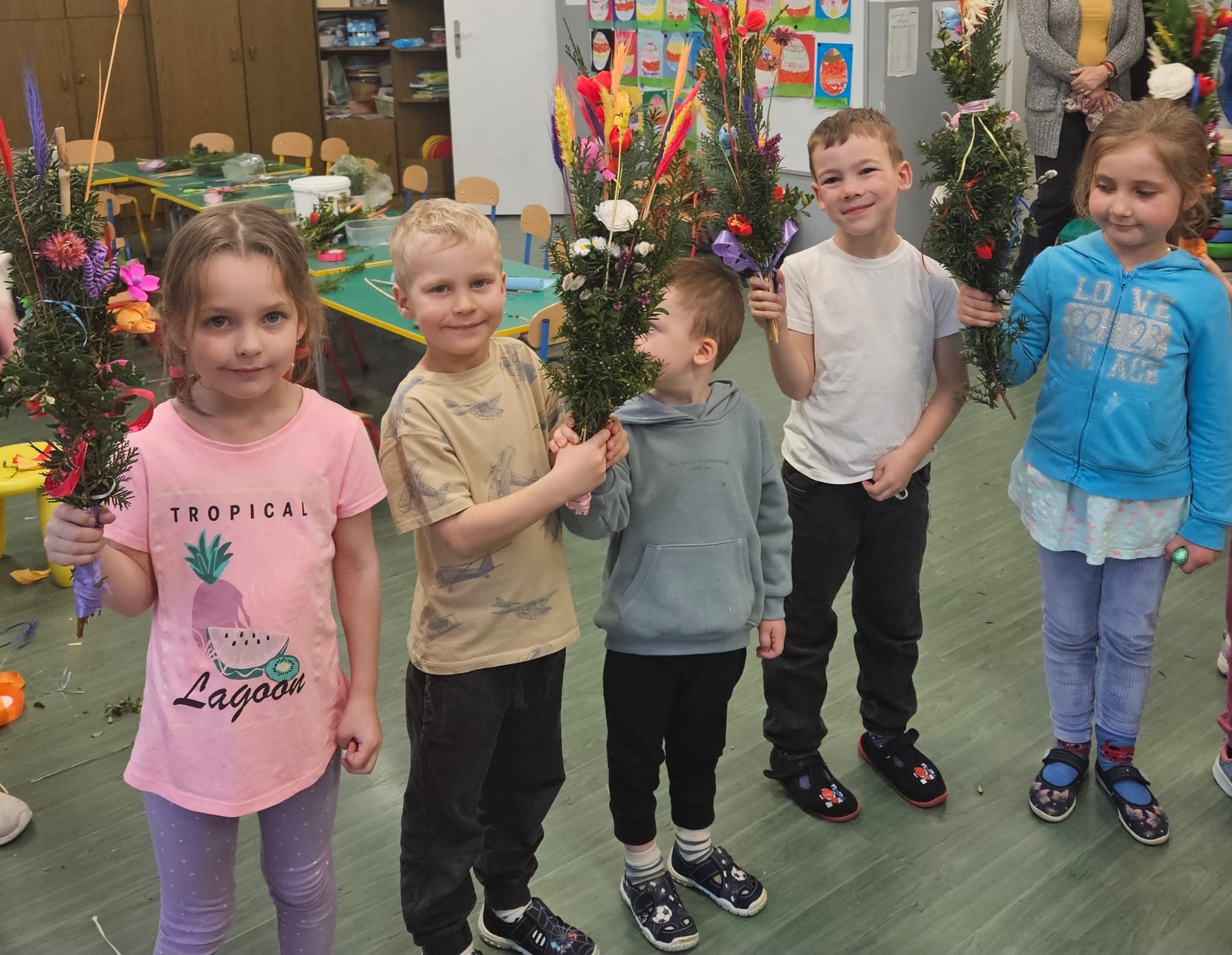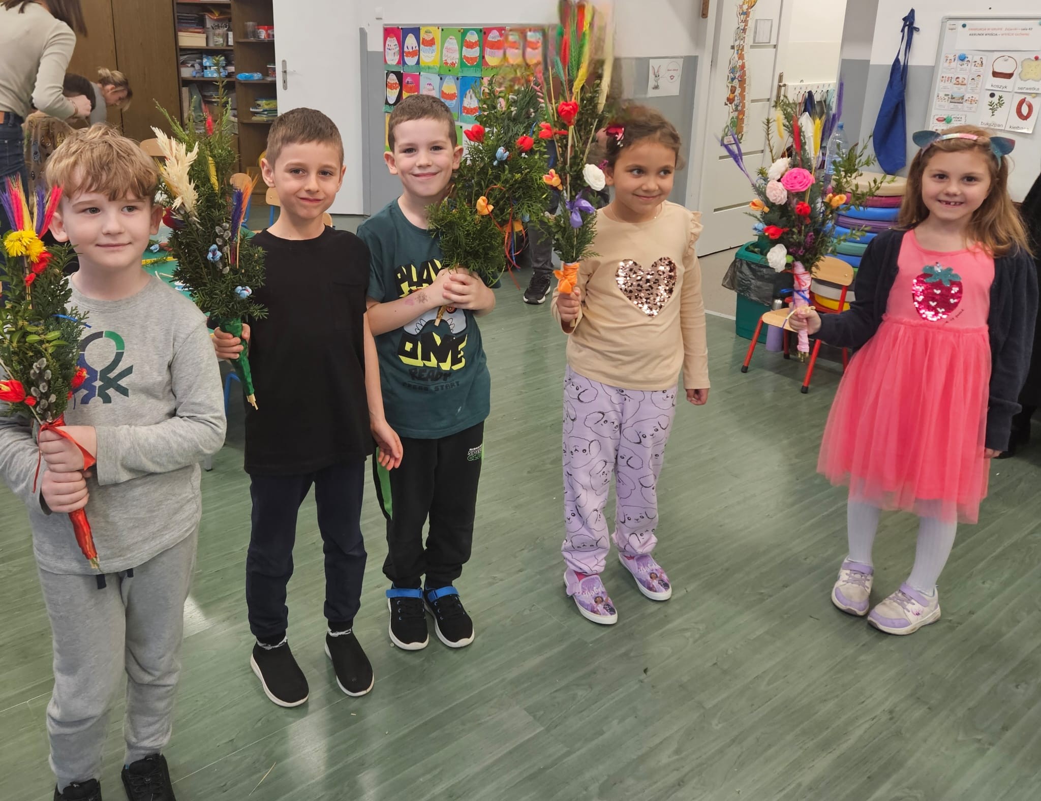 Przekazywanie tradycji regionalnych jest bardzo ważne, jest częścią naszej tożsamości kulturowej. Przy okazji świąt Wielkanocnych dzieci z grupy Zajączki rozmawiały o tradycjach związanych z ich obchodzeniem a także brały udział wraz z rodzicami w zabawach integracyjnych podczas zajeć otwartych. Wspólnie wykonały również wielkanocne palmy.